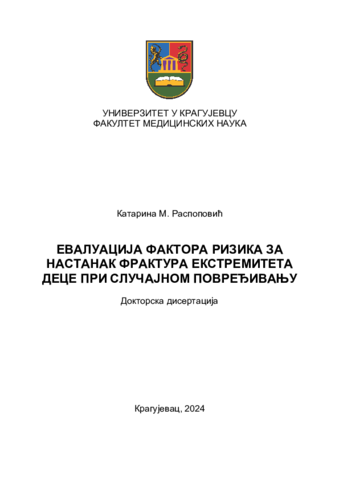 Evaluacija faktora rizika za nastanak fraktura ekstremiteta dece pri slučajnom povređivanju
