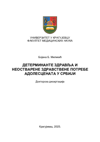 Determinante zdravlja i neostvarene zdravstvene potrebe adolescenata u Srbiji