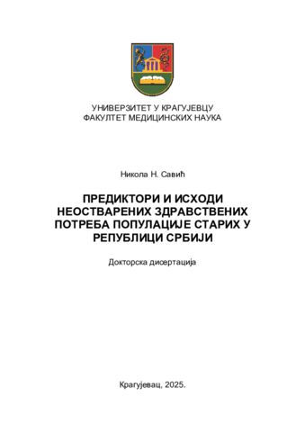 Prediktori i ishodi neostvarenih zdravstvenih potreba populacije starih u Republici Srbiji