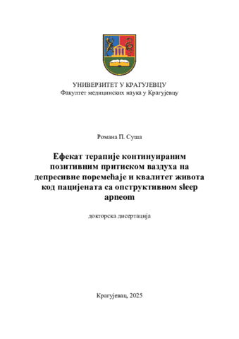 Efekat terapije kontinuiranim pozitivnim pritiskom vazduha na depresivne poremećaje i kvalitet života kod pacijenata sa opstruktivnom sleep apneom