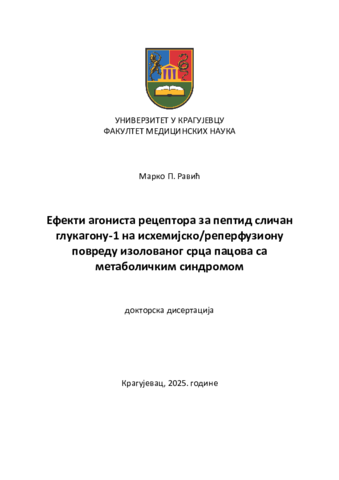 Efekti agonista receptora za peptid sličan glukagonu-1 na ishemijsko/reperfuzionu povredu izolovanog srca pacova sa metaboličkim sindromom