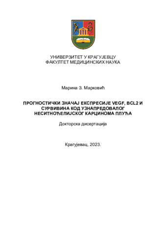 Prognostički značaj ekspresije VEGF, bcl2 i survivina kod uznapredovalog nemikrocelularnog karcinoma pluća